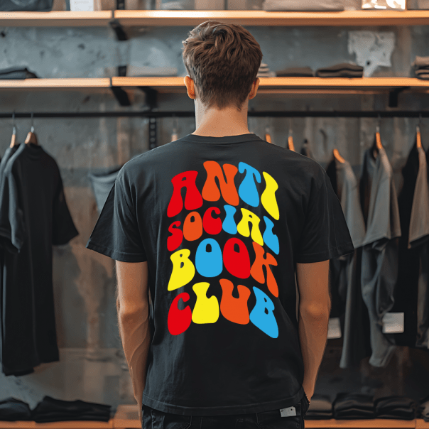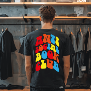 Das „Anti Social Book Club“ T-Shirt setzt auf starken Kontrast und Humor.