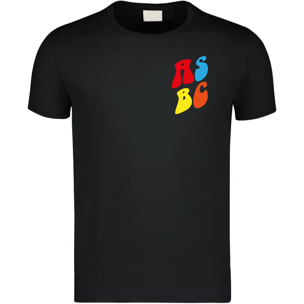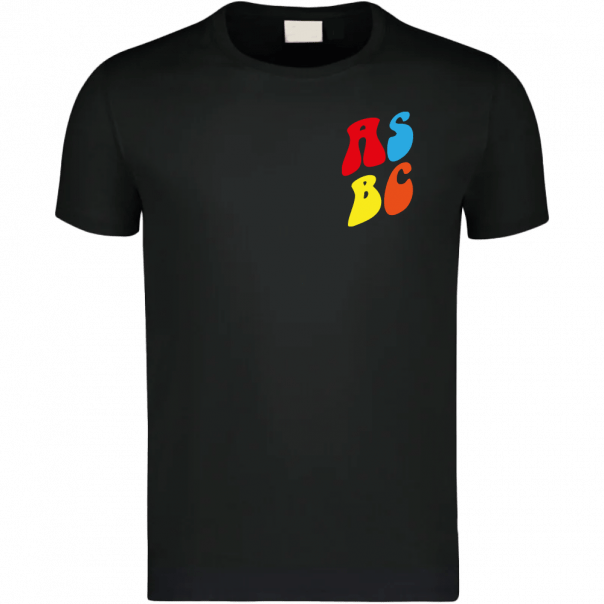Front: kleines „ASBC“-Logo in Rot, Gelb, Blau & Orange